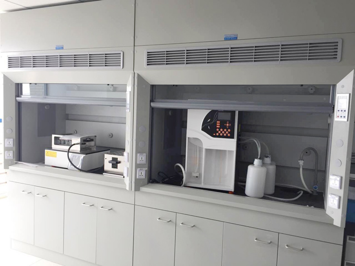 結(jié)構(gòu)組合:采用三段組合式柜體,上部柜體(通風(fēng)柜),中間(操作臺面),下部柜體(內(nèi)含單側(cè)獨立抽氣式組成柜及另側(cè)獨立水、電、管線系統(tǒng)容納柜設(shè)計。