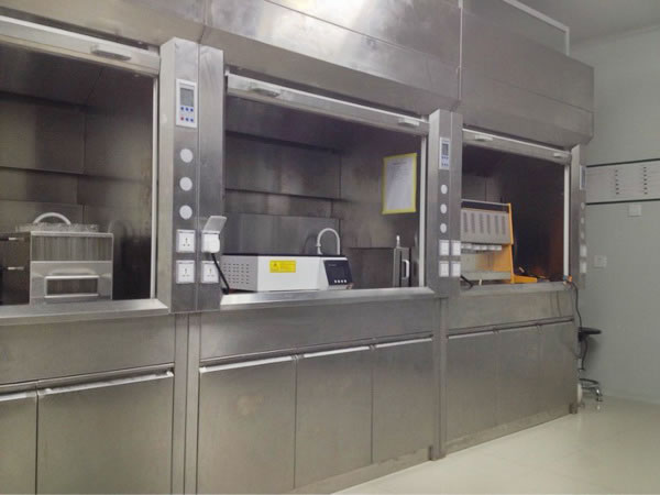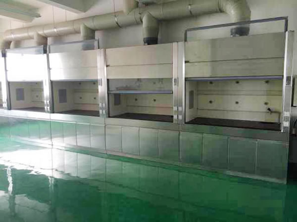 (1)內襯板、導流板:采用厚度1.2mm不銹鋼鋼板制作,分層(上、中、下),并使柜內無排風死角,各種比重氣體均能順利排出柜外,三塊導流板使處于不同高度空間有害氣體以控制濃度小于0.5ML/M3的性能指標分別從不同段區排出,操作口表面風速0.3-0.5M/S的速度將通風柜中氣體排出,確無任何殘留氣體存在。排風量1000-1600M3/N,噪聲要小。
